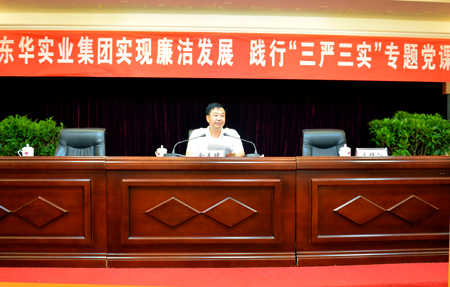 6月8日下午,东华实业集团按照市纪委、组织部、宣传部等部门联合下发的《关于开展“实现廉洁发展”书记讲党课竞赛活动的通知》要求,集团公司董事长、党委书记、总经理金克绪以《践行“三严三实”,做忠诚干净担当的好干部》为题给集团公司各级领导干部上了一堂生动的党课。