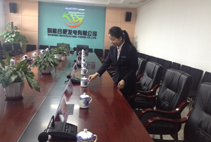 检查杯子、茶叶、打好开水;接待室、会议室的椅子、茶水杯、文件、麦克风摆放为一条直线;提前五分钟泡好第一杯茶水;会中为参会人员15分钟续水一次……每次的会务服务,他们都是严格要求每位员工按照标准流程和规程来的操作,这是达成高品质服务的基本保障。为了保证服务品质,他们制定了与皖能电厂相契合的工作时间和工作量划分,实行员工每日四次自查、主管每日四次巡查的制度,并制作了每日巡查表格张贴于各工作量区域。同时实行责任到人、绩效考核的制度,对保洁不到位工作扣分并与个人月工资考核挂钩,从而激发了员工的工作积极性、提高了服务质量。
