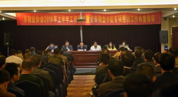 4月26日,市物业协会2016年上半年工作总结暨全市物业小区专项整治工作布置会议在东华怡乐生态园召开。会议由市物业协会会长(东华集团公司党委书记、董事长)金克绪主持。淮南市房管局副局长姚国辉,市城管局副局长王筠出席会议并作重要讲话,市房产局物业监督科科长谢丽霞,市物业协会秘书长蔡菊在主席台就坐。全市各物业企业负责人及代表参加了会议。