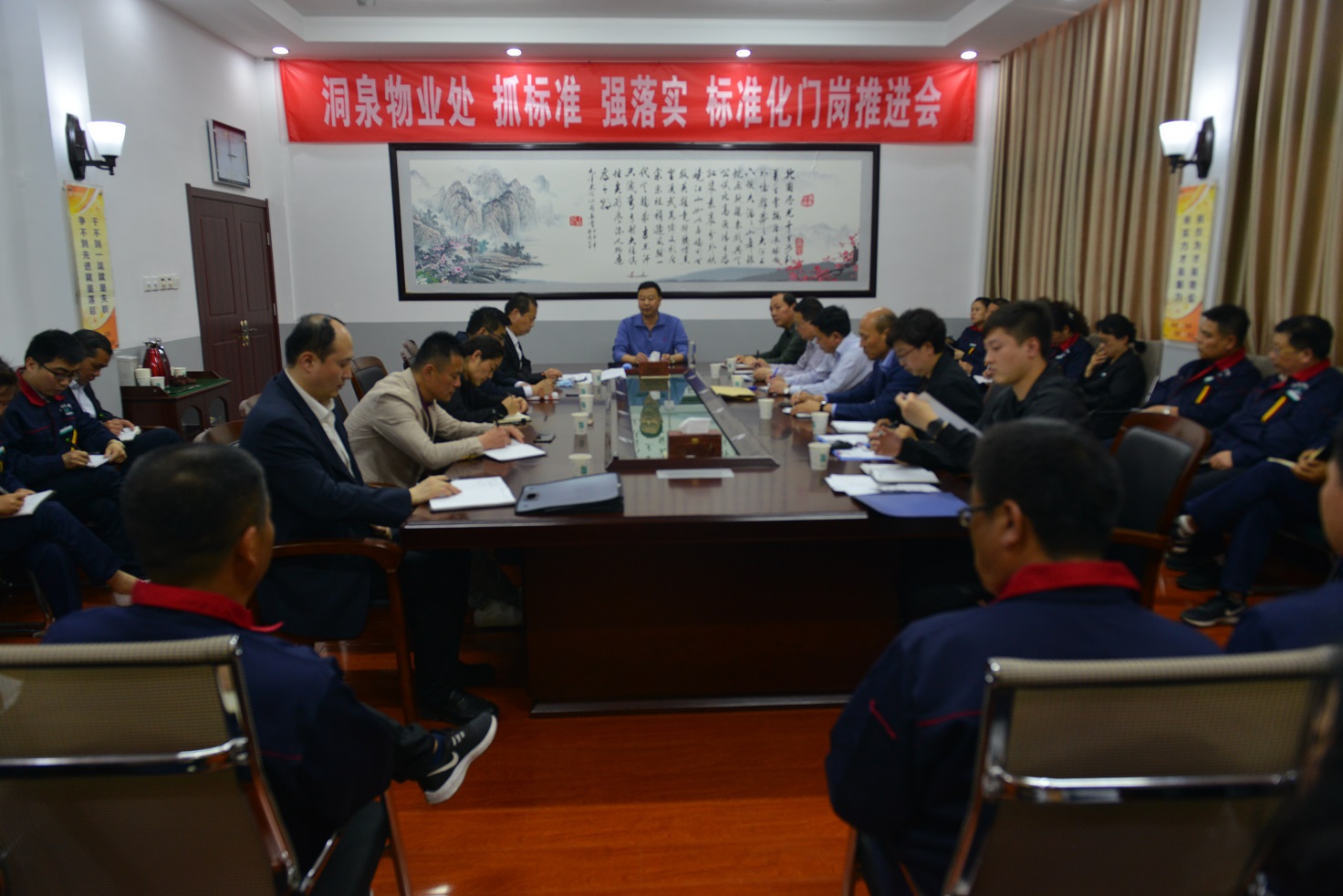 集团公司企业管理部、人力资源部、财务部、物业管理部、党政办公室、党群工作部相关负责人,物业处班子成员、项目部负责人、小区办主任、保安班长参加了调研会。