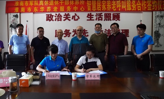6月24日下午,淮南市东华养老服务中心与市军休所签订《智慧居家养老呼叫服务合作协议》,签约仪式在市军休所会议室举行。市退役军人事务局党组成员、副局长余涛,集团公司副总经理王龙出席签约仪式。东华养老服务中心经理吴义、副经理陆晓虎和在淮军休干部参加了签约仪式。
