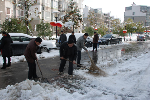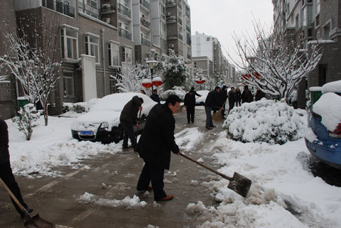 新年的第一场雪让整个洞山披上了白色的盛装,大家在欣赏美景的同时,也深刻感受到了出行的不便。为确保业主的安全出行,2013年2月19日上午,由东华实业(集团)公司统一调度,各部室人员积极出动,上下一心、齐心协力在洞山所属的小区内开展了铲雪清路保平安的活动。