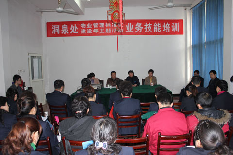 为进一步确保集团公司的年度培训计划落到实处、务求实效、挺进纵深。按照公司领导的统一部署,由物业管理部、党群工作部、法律顾问室制定方案,郑书华、孙芳、魏俊峰、黄振元、许瑞磊等领导精心准备、密切配合,于2013年3月14日下午,首先在洞泉物业进行了一次关于业务技能、企业文化、法律知识的专题培训活动,来自洞泉物业处60余班组以上人员参加了培训。