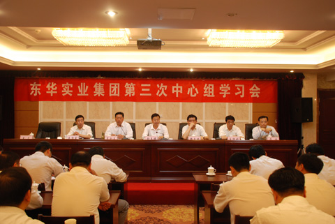 5月14日下午3:30,东华实业集团在怡乐生态园二楼会议室组织召开第三次中心组学习会。会议主题是:进一步转变工作作风,努力完成全年各项目标任务。会议由东华集团党委书记贾全文主持,董事长、总经理金克绪出席会议并作重要讲话。