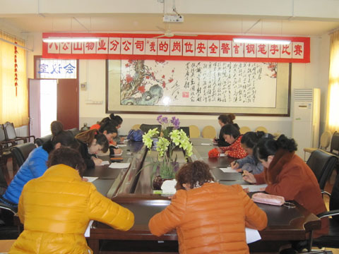 为响应集团公司工会关于在女工中开展“安康杯”——“我的岗位安全警言”钢笔字比赛的号召,进一步提高女工的安全素质,八公山物业管理分公司于2月22日下午在分公司二楼会议室举办了“我的岗位安全警言”钢笔字比赛。