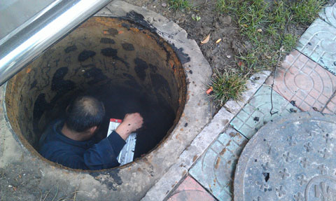2月26日上午,望井区队楼一层男卫生间下水道严重堵塞,污水横溢。西片区综合队队长汝松第一时间带领相关人员到达现场,在仔细观察分析现场情况后,决定派人进入楼外污水窨井内进行疏通。由于窨井内温度高,沼气大,存在安全隐患,所以又特别请来矿方通风工区专业检测人员进行沼气浓度检测。在确保安全的情况下,工作人员架梯进入窨井。窨井内全是泥浆,工人只能用木棍、铁丝等工具,一点一点地找通口。初春冻人不冻水,工人脚底下就是冰冷的污水。通红的双手、全身的污泥,一身的臭气却掩不住物业工人真诚的笑脸。