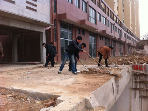 虽然时近三月,但正直降温天气,由于“东华鑫城”项目地势较高,冷风还是肆虐地吹打在脸上。在分公司领导的带领下,大家有的用铁锹清理建筑垃圾,有的用扫帚清理尘土,有的在搬运散落的石块,好一片热火朝天的景象。在劳动中大家抢干脏活、累活,经过近三个小时的努力,共平整道路200米、清理建筑垃圾8架车,“东华鑫城”施工现场焕然一新。