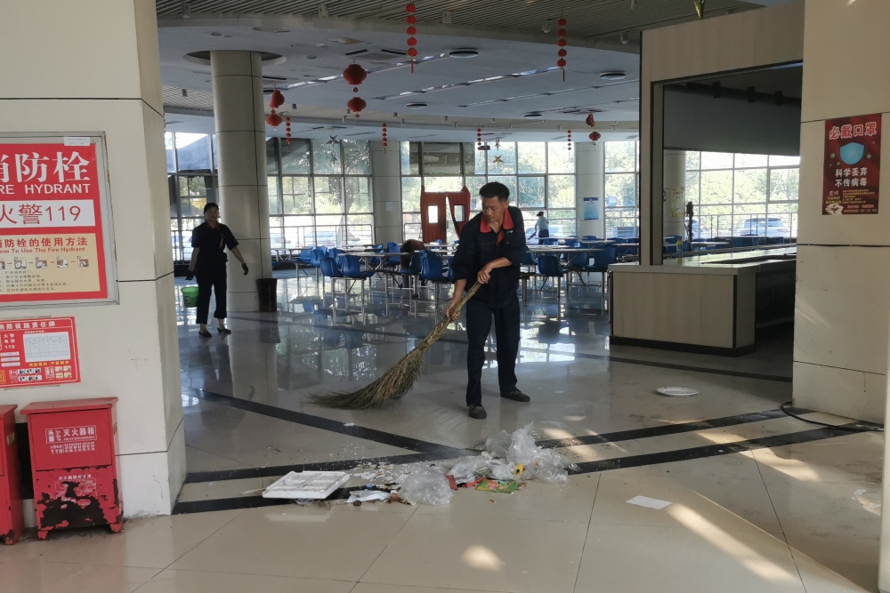 近期,为保障矿区干部职工就餐环境干净整洁,潘北(朱集)项目部潘北片区对矿一食堂进行全面的卫生清理。