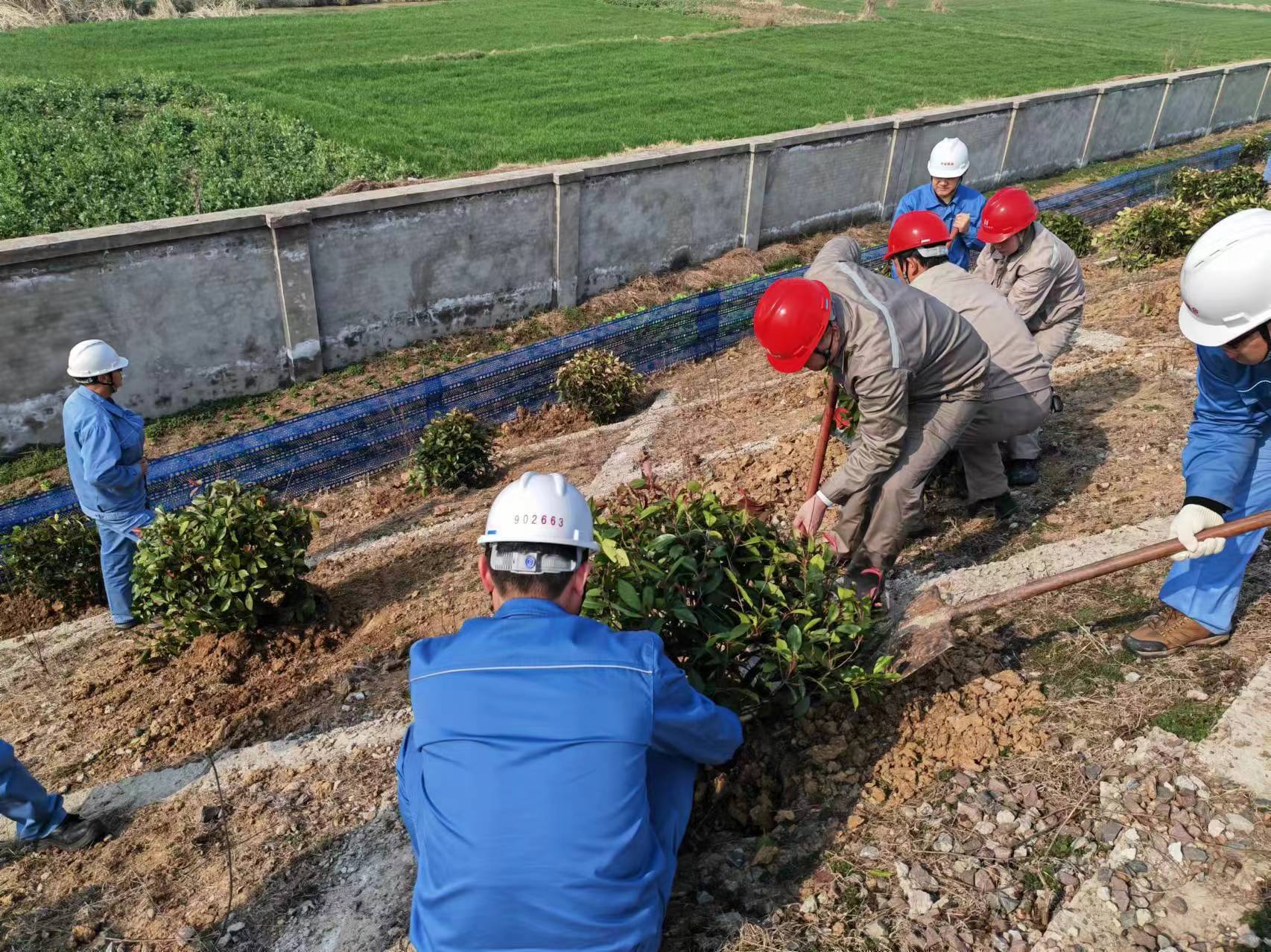 活动现场,该项目部党员领导干部带领职工与中安公司各部门组成党员突击队,三人一组,栽苗、扶正、培土、浇水,各道工序有条不紊的进行,一株株红叶石楠稳稳扎根在中安公司固废堆场。