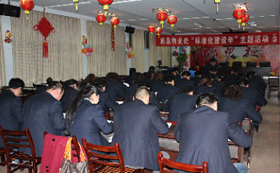 洞泉处领导对此项活动十分重视,印发了《物业管理标准及操作规程》,安排处领导班子成员和部分项目负责人作为授课人,采取集中和现场培训相结合的方式,对小区办、物业办主任、客服员、保安员、保洁员、维修工等分工种进行业务技能培训、测试11场次;同时要求基层各单位强化自主培训,在晨会及安全周会上有侧重点的进行贯标培训,并将有关知识充分运用到实际工作中,将各项服务工作做精、做细,扩大企业影响力。
