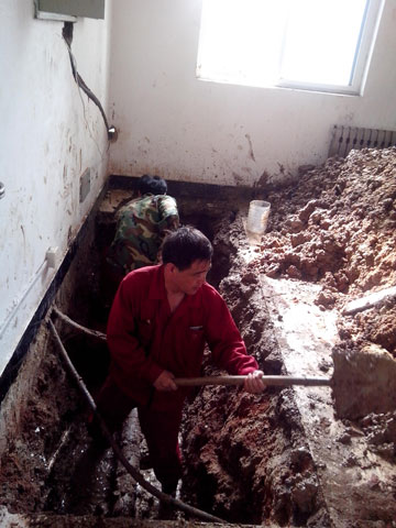 日前,潘北矿7号宿舍楼内地面突然涌出大量流水,水漫延到走廊,路面,给职工出行带来极大不便,后勤中心紧急请求东华潘北项目部抽调人手抢修,虽然超出了服务范围,但考虑到东华实业在矿区的良好形象,项目部领导高度重视,立即安排水电维修班的“岗位技术能手”吴传世师傅负责此事。