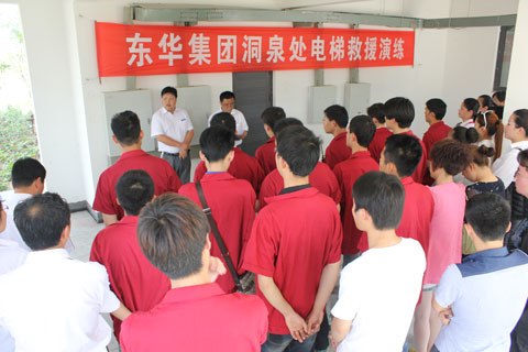 近日,洞泉物业处组织高层住宅物业、办公物业的维修、客服、保安和监控工作人员共四十余人在青松庭小区进行了电梯困人应急救援培训演练,从而拉开了洞泉处“百日安全生产暨六月安全生产月”活动的序幕。