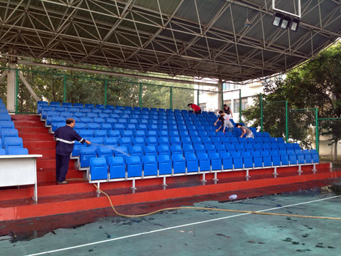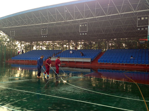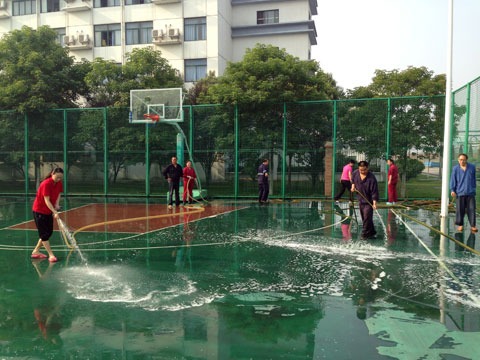 为庆祝中国共产党成立92周年,同时推进“标准化建设年”活动顺利的开展, 6月5日早上6点,项目部物业支部所属的物业队和机关的党员以及入党积极分子共计16人来到矿篮球场进行义务劳动,运输支部和井下支部的部分党员在得知消息后,主动要求加入到劳动中来。由于工作量比较大,大家对工作进行分工后,速度投入到工作中去,党员们个个累得汗流浃背,以实际行动践行党员先进本色。经过2个小时的辛勤劳动,篮球场内的观众座椅和场地被清刷的干干净净,项目部的此项举动得到了矿方工友的肯定和称赞。