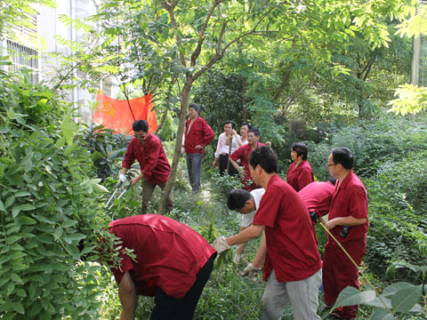 6月14日下午,洞泉物业处班子成员亲自带队,组织全处87名党员、入党积极分子在文明村二期开展党员奉献日活动。尽管天气炎热,可整个劳动现场却呈现出一片热火朝天繁忙景象。党员、积极分子们头顶烈日、脚陷泥土,紧张有序地清理小区杂草、修剪绿篱。有的用打草机打,有的用修枝剪刀剪,有的用耙子耙、有的用手拔……整个劳动过程,老党员不怕苦、不怕累冲在前,年轻党员更是不甘落后。他们的脸晒红了,手磨破了,没有一个人叫苦喊累,用实际行动彰显了党员的风采,以扎实的工作作风向建党92周年献礼。