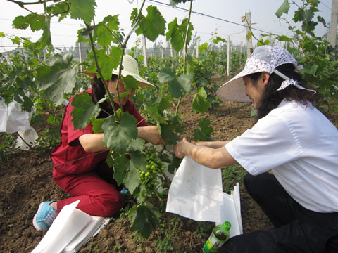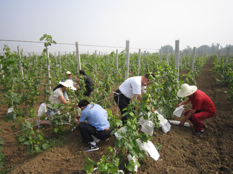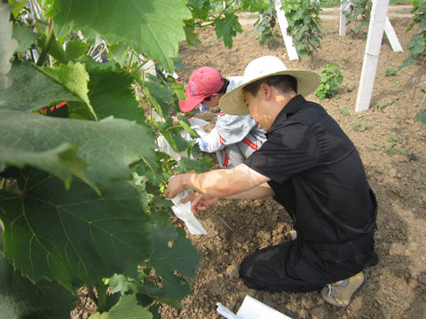 八公山物业分公司领导干部积极响应东华集团转变机关工作作风“走基层、创先争优”的号召,于6月14日上午来到东华怡乐园生态农庄,将一串串即将成熟的葡萄穿上了“防护衣”。