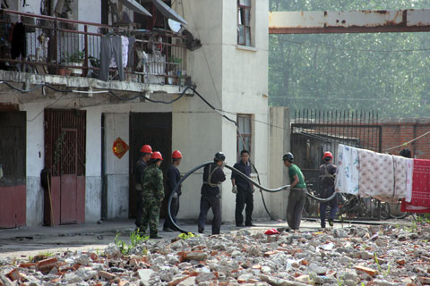 6月13日,单身宿舍新建的两个水源井需要敷设供电线路,为了节约材料,决定把旧水源井的供电电缆撤下来供新水源井用,这一条供电线路关系着对矿内生产供水的三个水源井,为了不影响生产,电缆必须在一天之内更换改造完毕,时间紧、任务重,为了确保工期,谢桥物业分公司的党员突击队现场成立了,21名党员兵分三路,各自带领10余名男工,从三个地点分头行动。90平方的电缆从5米的高空撤下,再重新架上5米的高空,从矿内变压器到单身宿舍水源井500多米的直线距离,党员始终站在最前面,他们用手拽、用肩扛,使出了全身力气,号子声一浪高过一浪,老天也好像故意考验党员的意志,挂着明晃晃的太阳晒了一整天,为了赶时间,全体人员中午在现场吃了一点盒饭又继续战斗,下午5点钟,顺利完工,比预计的工期提前了两个小时。
