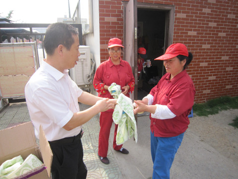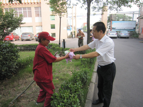 6月21日上午,八公山物业分公司领导带着清凉用品分别来到李嘴孜工广和淮上西苑小区,为工作在一线的员工,送去丝丝清凉。慰问中,分公司领导亲切提醒员工在户外工作时,一定要注意防暑降温。员工们接过降温用品都展现得非常热情,并表示:“虽然天气炎热,但也会坚守岗位,虽然是小小的物品,但是已经让我们心中感受到丝丝凉意,我们一定会努力工作!”