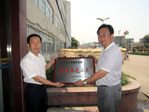 6月21日上午,东华集团副总经理王龙来到八公山物业分公司,为分公司听泉小区颁发“安徽省物业管理优秀住宅小区”荣誉称号。