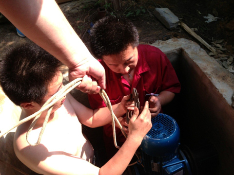 在抢修过程中,由于老水泵上的螺丝已经锈蚀拧不下来,抢修人员想尽各种办法,最后张孝康同志从自己家带了切割机来,和同事一点一点把已损坏的老水泵卸下,换上了新水泵,经过10小时的抢修,供水终于畅通了,可是在室外将近40℃的高温下,汗水一次一次湿透了他们。