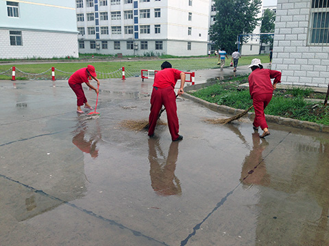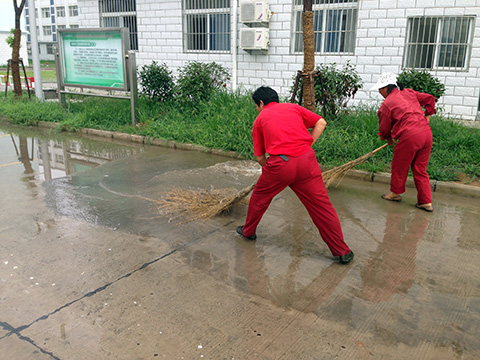 7月17日下午2点半左右,天降瓢泼大雨。由于雨势猛,降水时间集中,矿内很多地方出现了大面积积水现象,短时间整个矿区工广路面一片汪洋,个别路面较低和排水较慢的区域甚至没过小腿,影响到工人们的正常行走和车辆的行驶。见状,东华潘一东项目部工广环卫保洁人员,纷纷冒雨拿起大扫帚、水桶、铁锹等工具,将积水一扫帚一扫帚的赶到排水口和窨井处,对排水不畅的地方及时疏通。降水持续了近两个小时,他们全然不顾衣服鞋子湿透了,身体着凉了,始终不停的奋战在现场。雨,渐渐地停了,他们仍然坚持处理完剩下的积水,看着干净的路面,再互相看看对方“落汤鸡”的样子,都开心、会意的笑了。他们此次突击任务也得到了矿方和项目部领导的一致好评。