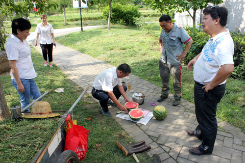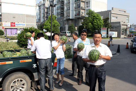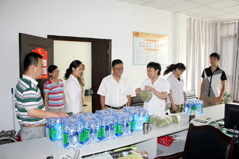 由于防暑降温经费有限,为了能购买到更多的防暑降温物品,领导班子亲自到市场多方比价,挑选购买价廉物美的防暑降温物品,将西瓜、矿泉水、绿豆、花露水、风油精、人丹等亲自送到基层各单位一线员工手中。