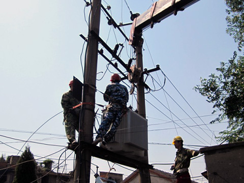 我处供电二队接到汇报后,立即组织人员赶到现场进行抢修,顶着骄阳烈日,利用其它供电改造的旧电线,对主大街供电线进行改造,共回收利用旧电线1100多米。通过全力抢修,稳定了该区域的正常供电。看着已成“水人”的供电队员工们,附近围观的群众也亲切的称呼他们为“骄阳下最可爱的人”。