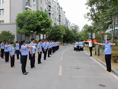 近日,洞泉处50余名保安由分管处长带领,在南山村A区进行了保安标准化现场演练。