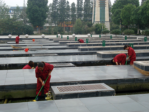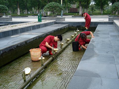 一是组织机电工对矿区工广内的路灯、景观灯进行细致排查、全面亮化,同时,安排专人对所有灯罩进行擦拭清理,去除积尘和污垢,使灯光更明亮、景色更美观。二是组织保洁员对全矿卫生环境进行一次全面的大整治,重点是楼前楼后、绿化带、草坪等卫生死角,确保矿区环境的整洁干净。三是组织人员对音乐喷泉池进行全面清刷,从喷嘴到水管、从池底的淤泥到池壁的青苔,都被一一清理干净,在这次清刷工作中,项目部抽调人员20余人次,清理淤泥、杂物共10余袋,使音乐喷泉池焕然一新,壮观、绚丽的喷泉景观为丁集矿营造出浓厚的节日气氛。