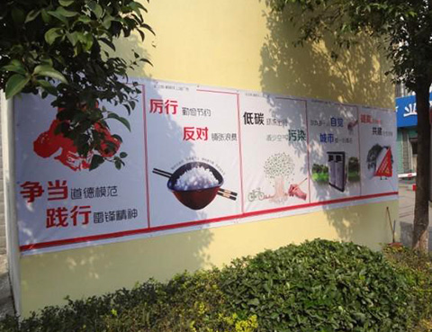 一是着力营造创建宣传氛围。在小区、重点路段等显要位置设置“讲文明、树新风”公益广告。利用小区宣传栏、宣传橱窗等阵地,张贴更换创意宣传画,着力营造浓厚氛围,广泛增强小区业主文明创建意识。