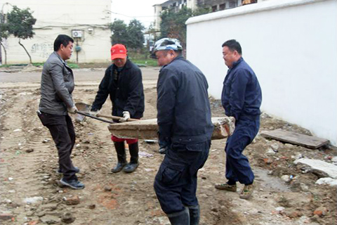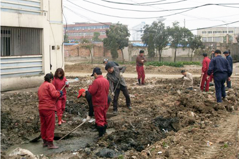 由于附近新建楼房在施工过程中不慎压塌了新宿舍楼的下水管道,造成该楼不能使用卫生间,也不能供水,给楼内的600多名单身职工生活带来了极大的不便,为了尽快为单身职工解决困难,矿内综合队集中了水电和卫生的十多名男工和几名精干的女工,挖开压塌的管道,重新敷设水泥管,口径500mm的水泥管,挖浅了下不去,但由于压塌的管路不太长,不适合用挖掘机,因此只能用人力一铲一铲地挖虽然旁边下水道的臭气熏得人阵阵作呕,但是即使手磨起了水泡大家也不肯停下来,所有人只有一个心愿,赶快修好下水道,给单身职工提供最大的方便,让他们能够安心工作、安全生产,经过一天的紧张抢修,终于在天黑前恢复了管道。