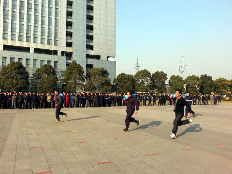 裁判员一声枪响,运动员们扛着沙包以敏捷、矫健的身躯飞快的冲出起跑线,大家你追我赶,不甘落后,赛场气氛逐渐紧张起来。虽然在途中,有的选手因为失去重心不慎跌倒,但他们没有放弃,重新站起来扛起沙包,努力向下一个起点奔去,队员们交接的是沙包,传递的是激情和友谊。最终扛沙包比赛在一片热烈、和谐和欢愉的气氛中结束。