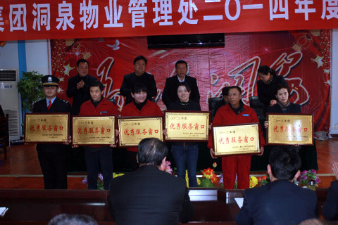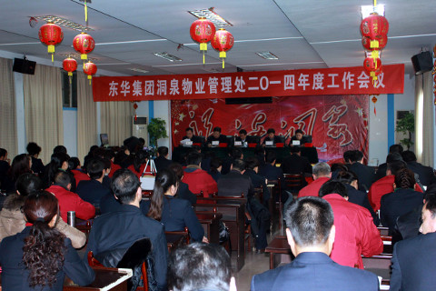 2014年1月17日下午,洞泉物业处在二楼会议室隆重召开2014年度工作会议。这是继东华实业(集团)公司2014年工作会议之后,洞泉处为认真贯彻集团公司工作会议精神,全面安排落实2014年各项目标任务召开的一次重要会议。处党总支书记方士莲同志主持会议,处长陆兴哲同志做了2014年工作报告,副处长李鸣皋、刘洪、王玲同志分别宣读了《洞泉物业管理处2014年经营考核管理办法》、《关于表彰2013年度“优秀管理者”的决定》和《关于表彰2013年度“先进单位”、“优秀服务窗口”、“服务明星”的决定》,并进行了颁奖。
