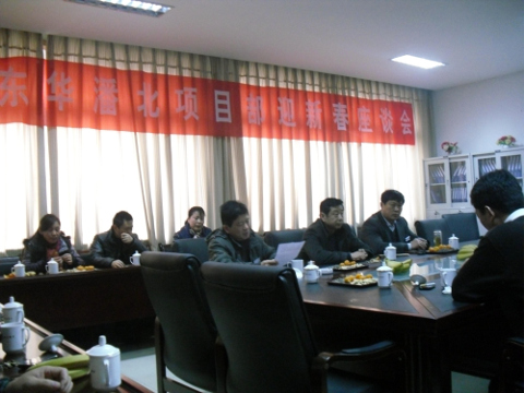 2014年1月28日下午4点,潘北项目部迎新春座谈会在潘北宾馆举行。项目部领导和来自矿后勤中心领导和项目部各单位先进工作者参加了座谈会。