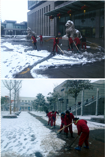 针对恶劣天气,顾北项目部及时启动了防雪防滑应急预案,为使矿方工友上班出行不受影响,2月7日一早,天刚蒙蒙亮,分管物业的蒋经理带着物业队的员工们开展了紧急除雪活动,近百名员工拿着铁铲和大扫帚在矿各主干道上清除路面积雪。铁铲清脆的撞击声和人员调度声充斥着整个干道,员工的鞋湿了,身上冒了汗,但是大家心里高兴,干得特别起劲。想到自己的劳动给矿方工友们带来了便利,保障了出行安全,员工们都很有成就感。在物业队全体员工的努力下,各主干道得到清扫,同时还在楼梯、台阶等重点部位铺设了防滑草垫,此项工作的开展得到了矿方领导和工友的一致好评。