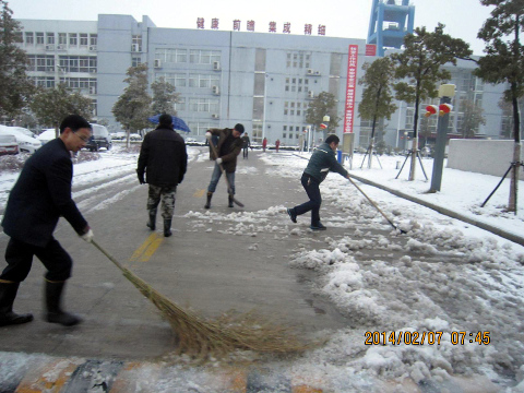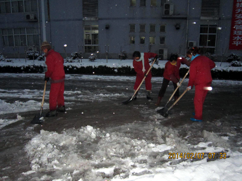 2月7日早晨6:00,大家不顾寒冷,早早来到单位,拿起铁锹、扫帚,分工合作,扫的扫、铲的铲,干得热火朝天。积雪松的地方用扫帚推,积雪压实的地方就用铁锹一点点的铲除,许多人的手和脸被冻得通红,然而,这一切丝毫没有影响大家的劳动热情,经过两个多小时的奋战,将矿内道路上的积雪打扫得干干净净,确保了矿井工作人员及车辆的出行安全,受到了矿方职工的好评及领导的肯定。