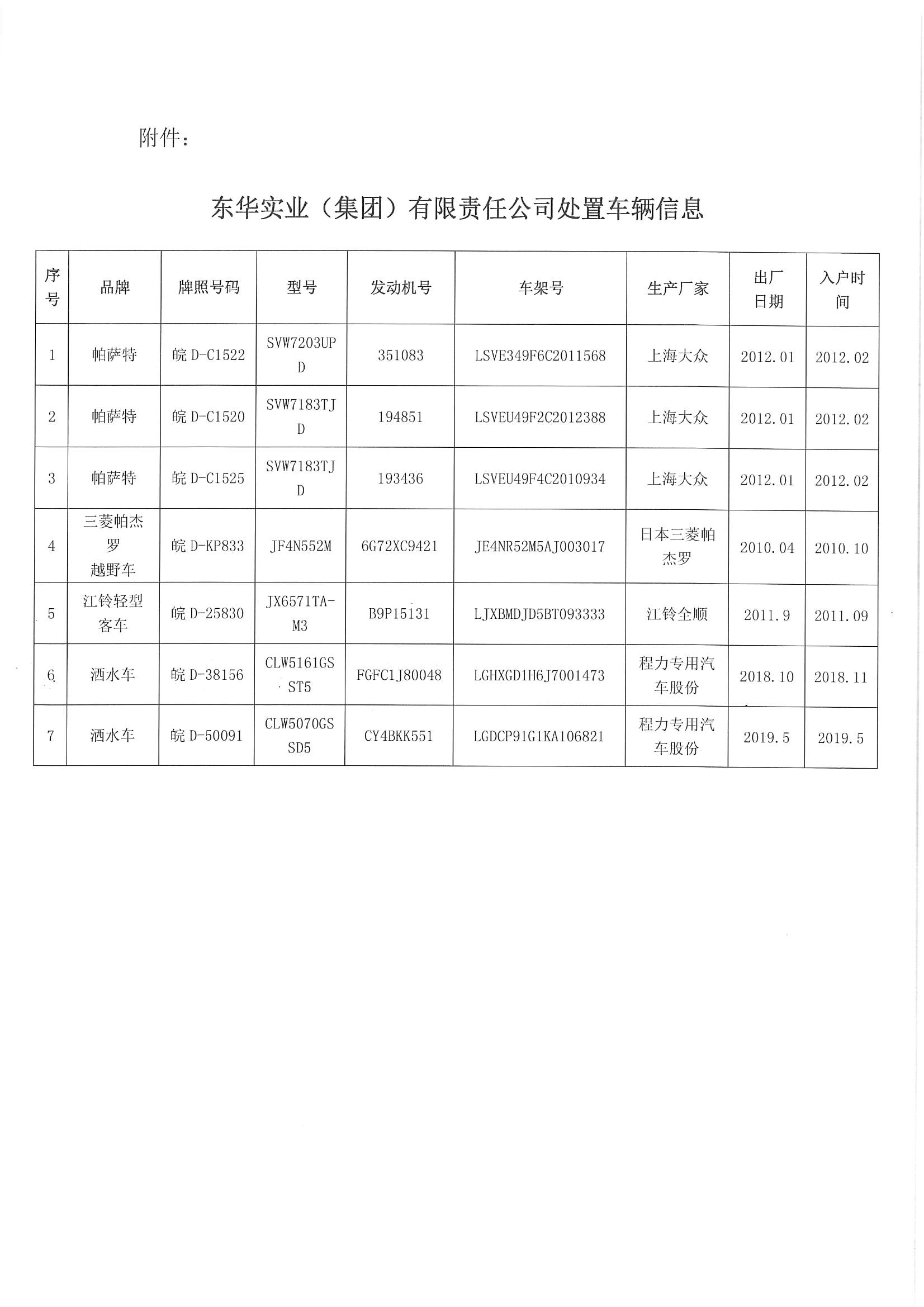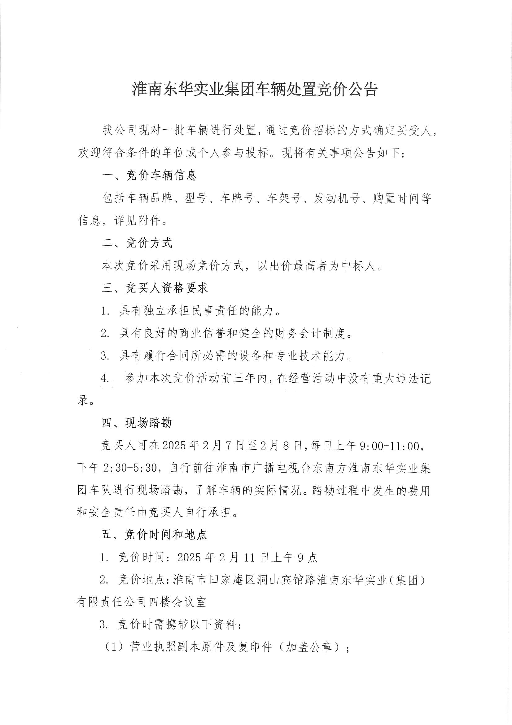 淮南东华实业集团车辆处置竞价公告